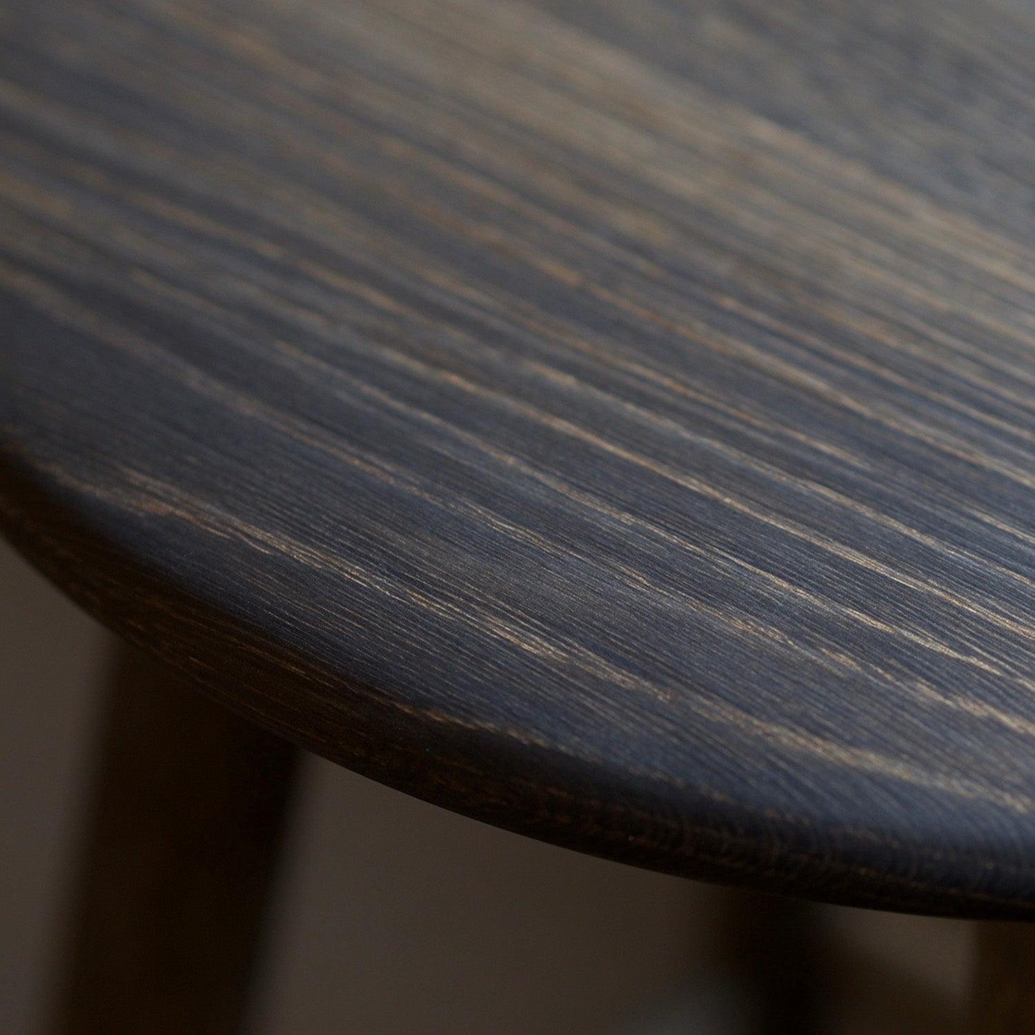 鉄媒染という染色技法で黒く染めたミズナラのスツール。