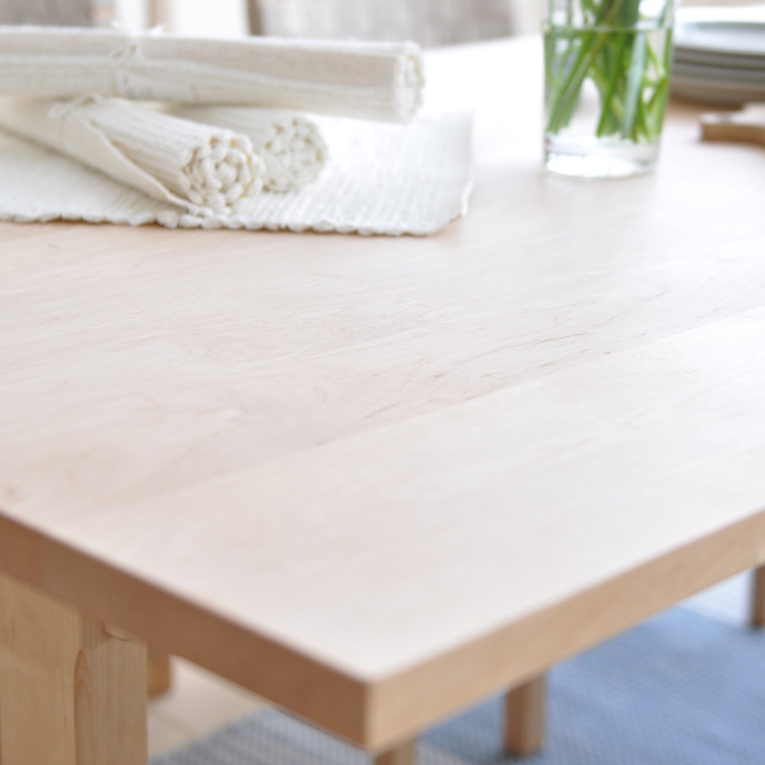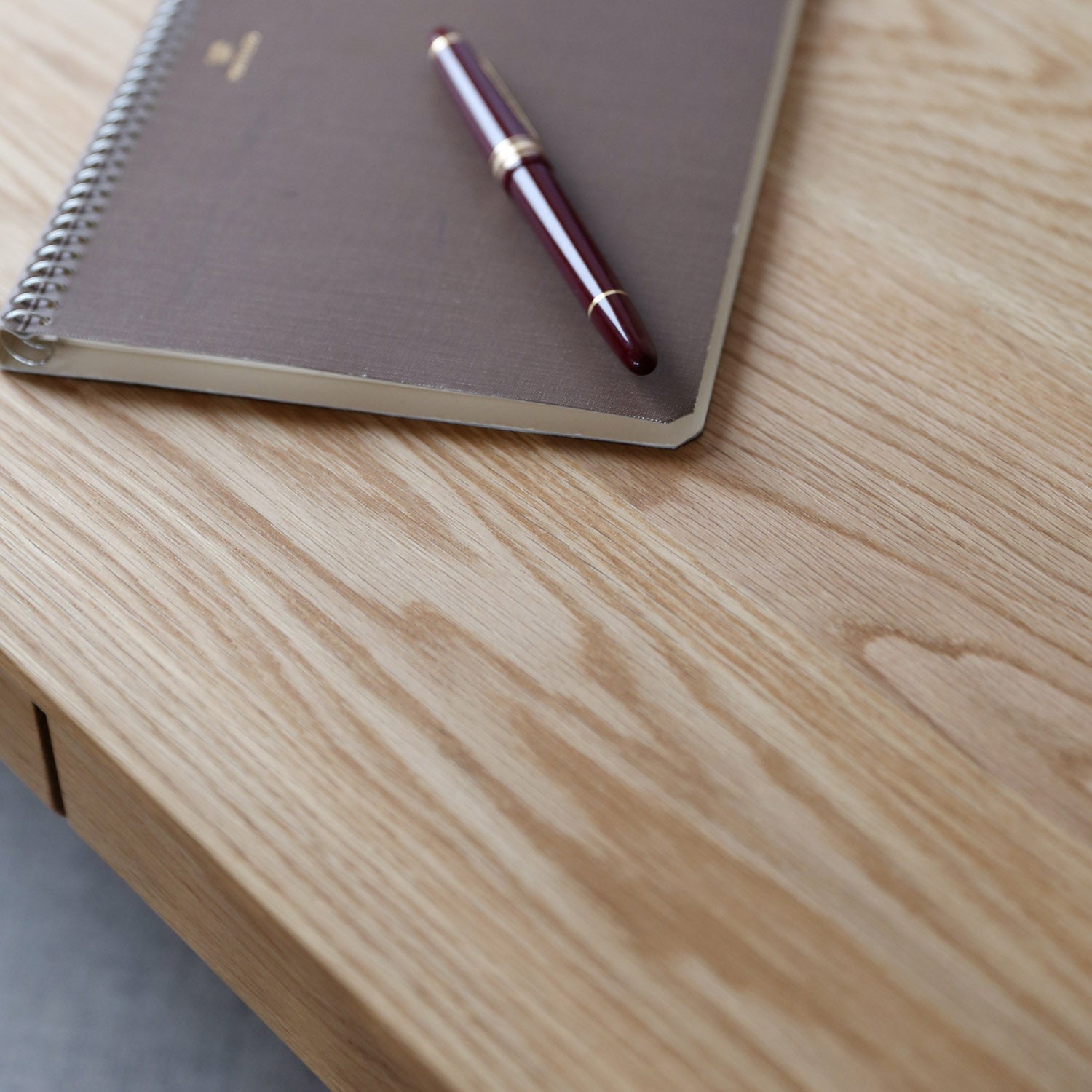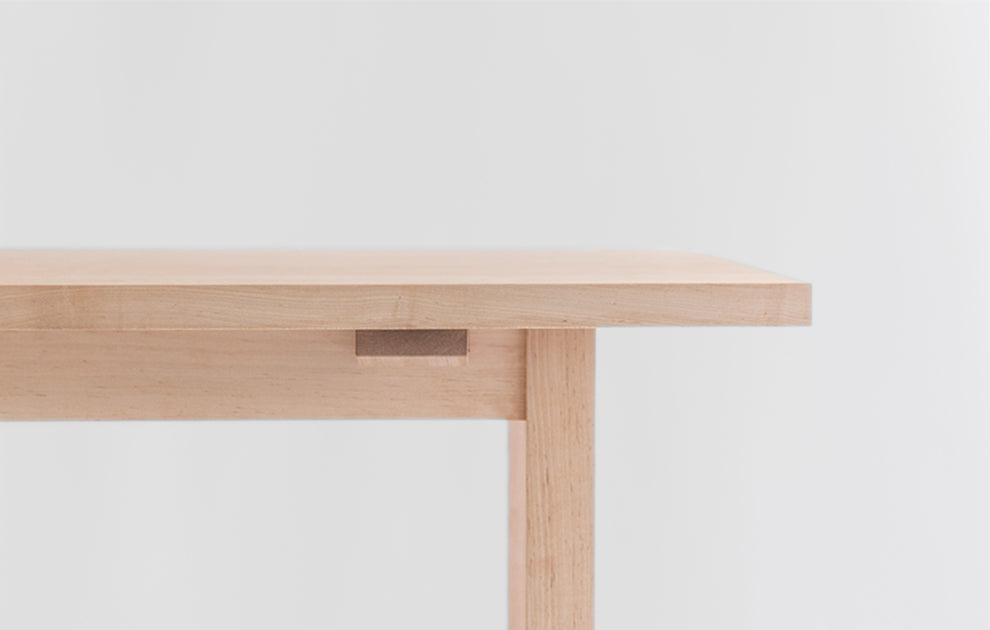 パームヤシの石鹸水溶液で仕上げる、デンマーク家具に使われてきた方法です。白くマットな表情で、無塗装に近い自然な色味に仕上がります。イタヤカエデ材の家具にのみ、このソープ仕上げを使っています。使い始めは水拭きをすると毛羽立ちが目立つ場合がありますが、自然と馴染んでいきます。