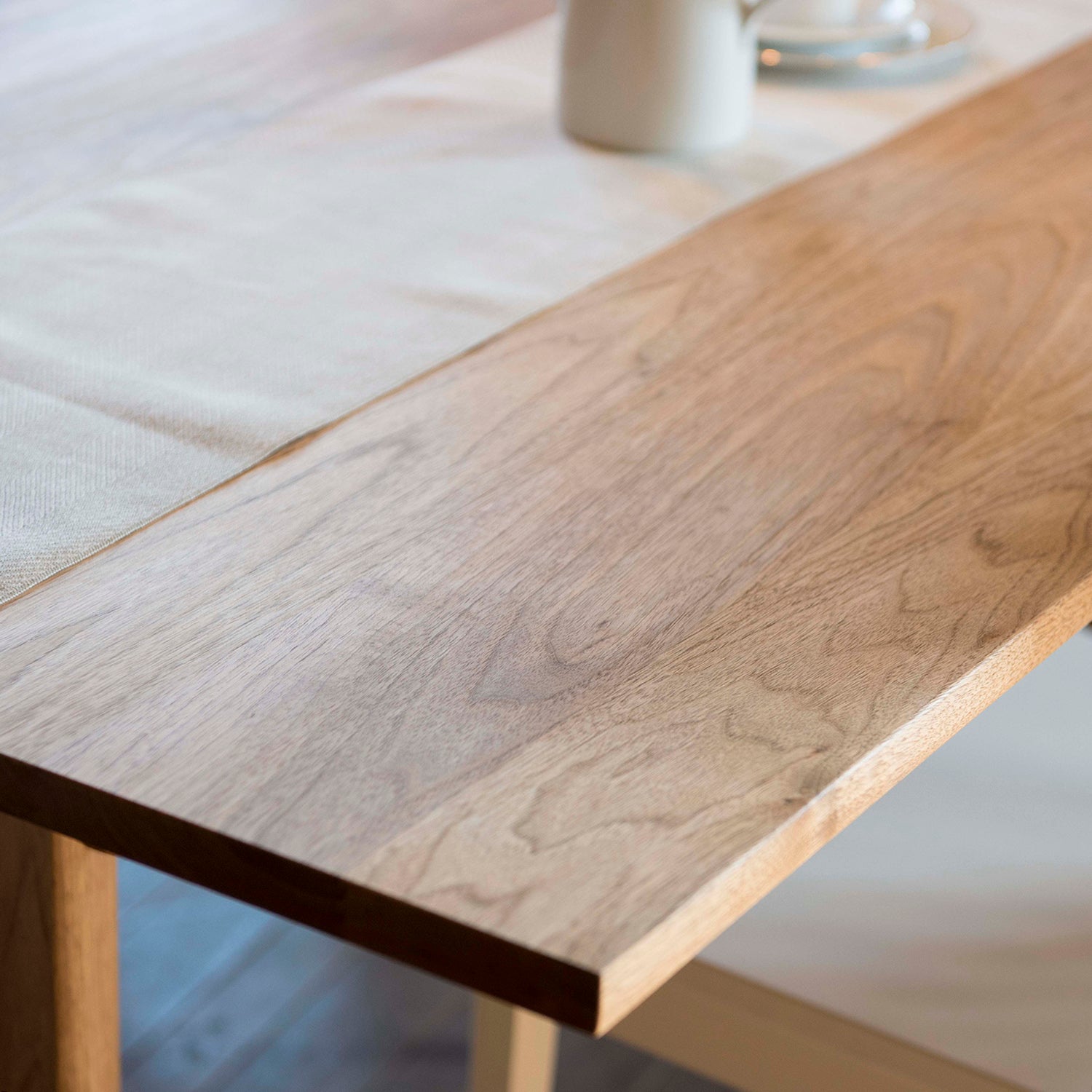 茶褐色で艶があり、木目の美しいオニグルミ。イタヤカエデやミズナラに比べると、柔らかく軽い材質です。狂いが少なく加工性に優れ、家具材としても人気の樹種ですが、北の住まい設計社では強度の観点から一部の家具にのみ使用しています。また、希少なため限られた台数での制作となっています。